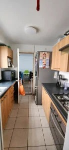Departamento en venta ubicado en primer piso, cuenta con 3 dormitorios amplios con closet, piso flotante, 2 baños, cocina tradicional equipada con encimera a gas 4 platos, horno electrico, campana, loggia, calefont.